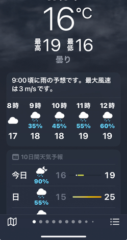 イップン違い同じような時間に目が覚めたのね。天気予報見てみました9時から雨ですね。こちら