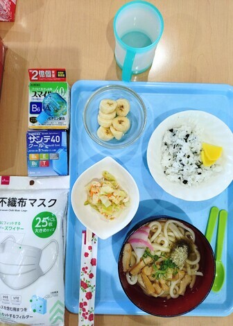 17:10🌺はなさん🌺こんばんは🎑只今デイ🚐帰宅即投稿しています狐うどん割箸持参しました🐊午後娯楽:2字熟語おやつ🕒たべた一夕食巻き寿司+刺身夜食白飯+刺身完食