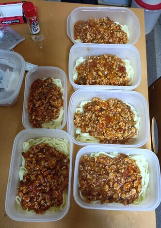 火曜炊事介護婦様平麺パスタ🍝5回.昼分1小器完食しました🐊