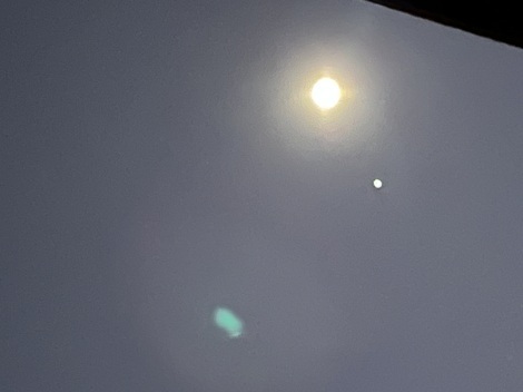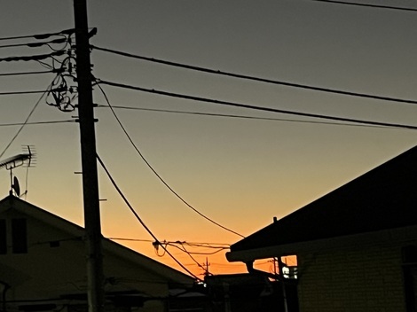 トイレ終了で歯ブラシ顔?洗ったかな??確かに顔が赤い今日の暁は赤かった反対側に月見えるよと言うので見つけて見ました、いたいた
