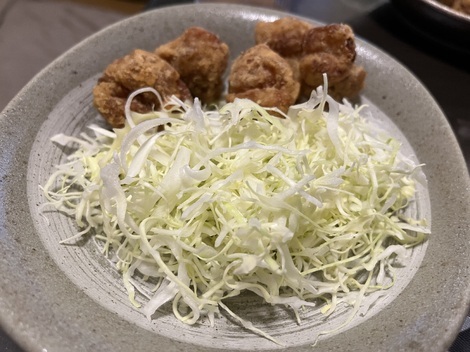 夜は唐揚げ少し食べました。昼のラーメンお腹いっぱいで食べられない。