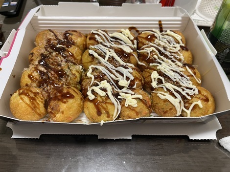 のち帰りお酒買いに出て、たこ焼き買って来てたね。