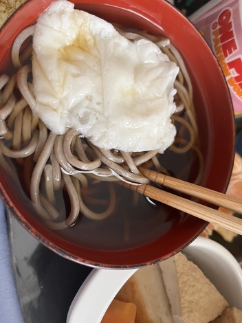 冷凍庫から年末のお蕎麦持って来ました食べ切らなくて冷凍に山芋もまだ溶けて無かったわね。