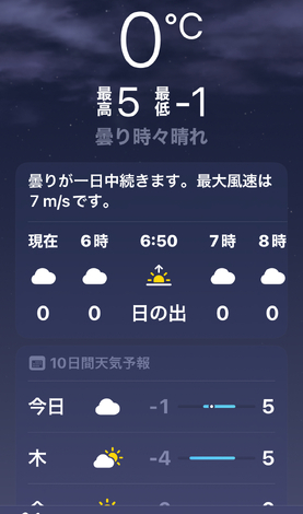 5時半今日も気温は上がらず5度だとか最強寒波ですか〜