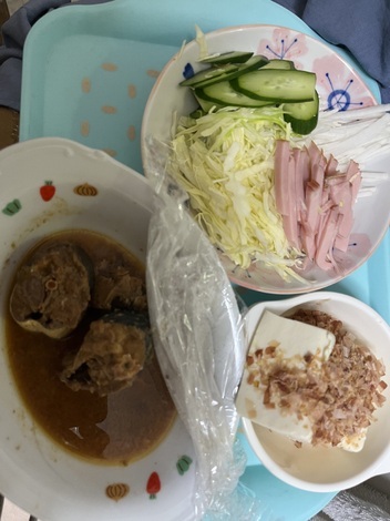 カレー少し食べましたね。またかゆいです。困った物です。缶詰ご飯でした。
