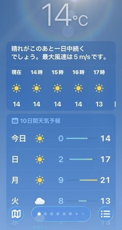 今日は暖かいですね。この先暖かい日が続くのかな?
