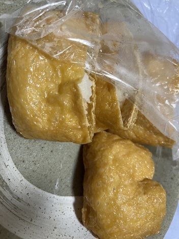 23時11分あれから少し寝られたようです。お稲荷さん2つ食べました。お茶🍵をペットボトルに入れておきました。