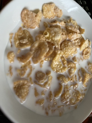 ケロッグ食べました。パン焼いて食べようかな?と