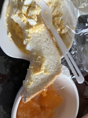 朝は卵パン一気に食べたらお腹いっぱいになってしまった。