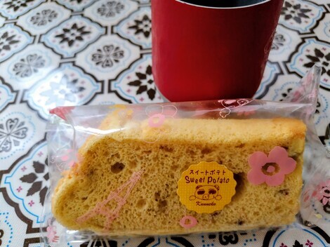 冷凍保存していたスイートポテトのシフォンケーキを食べました。