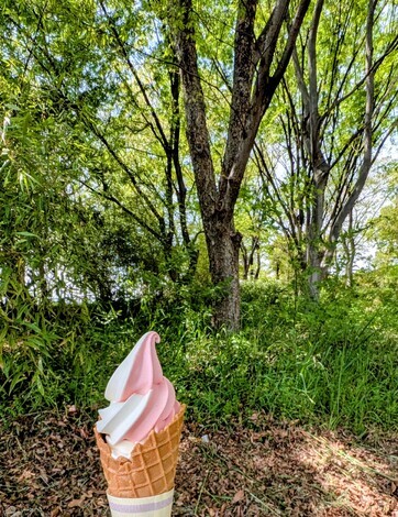 いちごとばにらのソフトクリームを食べました。