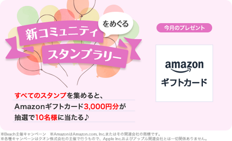 プレゼント:コミュニティをめぐって、すべてのスタンプを集め、Amazonギフトカード3,000円分を当てよう!