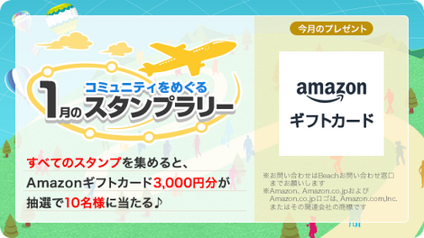 プレゼント:コミュニティをめぐって、すべてのスタンプを集め、Amazonギフトカード3,000円分を当てよう!