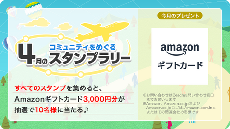プレゼント:コミュニティをめぐって、すべてのスタンプを集め、Amazonギフトカード3,000円分を当てよう!