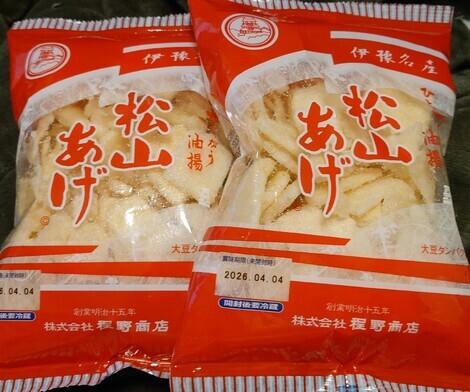 黒糖丸ぼうろ、いわしのスナック、松山揚げを頂きました。