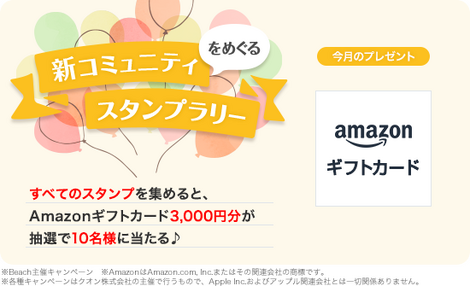 プレゼント:コミュニティをめぐって、すべてのスタンプを集め、Amazonギフトカード3,000円分を当てよう!