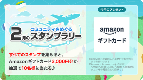 プレゼント:コミュニティをめぐって、すべてのスタンプを集め、Amazonギフトカード3,000円分を当てよう!