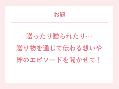 「贈ったり贈られたり…贈り物を通じて伝わる想いや絆のエピソードを聞かせて!」というテーマについてのコメントを募集します♪