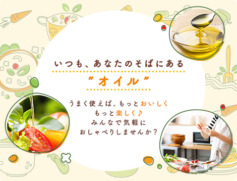 「こんな使い方をしたらおいしかった」、「新しい発見があった!」など、毎日の暮らしに欠かせない“オイル”について、みんなで気軽におしゃべりしてみない?