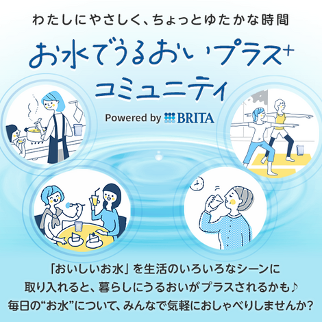 「お水でうるおいプラス コミュニティ」は、1966年にドイツで誕生した浄水器メーカー「ブリタ」のコミュニティなの。
