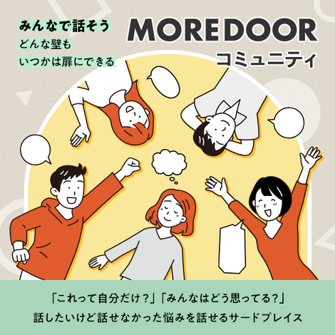 「MOREDOORコミュニティ」は、これからのことにワクワクしている人も、ちょっぴり不安を感じている人も、気軽に想いや悩みを語り合える…そんな場所よ。