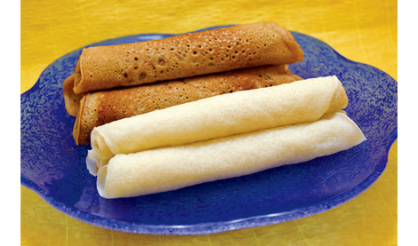 🎓️黒糖入りの生地を薄く焼いて巻いたものを「チンビン」、小麦粉生地にアンダンスー(油味噌)を巻いたものが「ポーポー」です