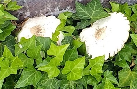 犬の散歩に行って賃貸住宅の案内看板の下に大きな茸を見つけました。