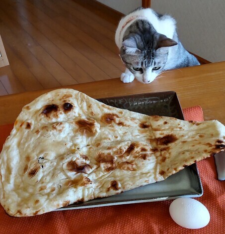 今回は、ナンの先端が少し焦げていますが…前回は、裏面全体が黒く焦げていました…🫓●🙀!