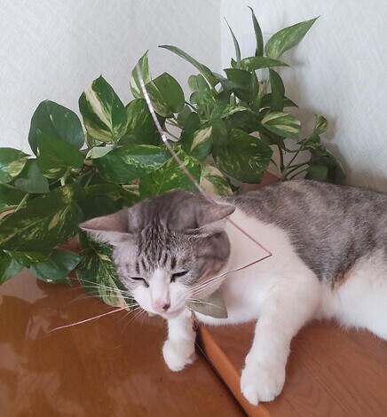 🕵️大好きな「水引き」とじゃれる時に、こんなイカのような耳になります🦑👂️😽