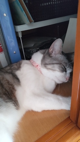 「まったりするテル君は、仲良しのご近所さんの猫です」→「涼しい場所でお昼寝しているミネル」🤫
