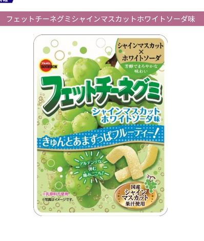 フェットチーネグミにシャインマスカットが出ますね😄秋の味覚のお菓子が増えました🙌🎵お菓子のコーナーを見るだけでも楽しいですね~~~🎵