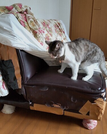 革製品で爪を研ぐのが好きで、ソファーベッドやリビングの椅子は、見るも無惨な姿になっています