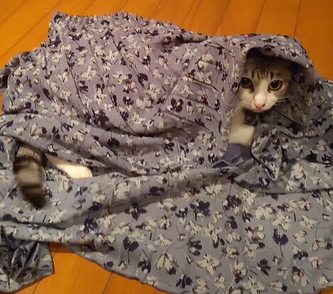 👗プリーツスカート(布地)の感触が好きなのようで…、ゴロニャンしたり、潜り込んで見つけてくれるまで身を潜める事もあります~😽