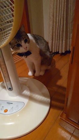 「ラフテー」→「テレビと扇風機の間に隠れるミネル」