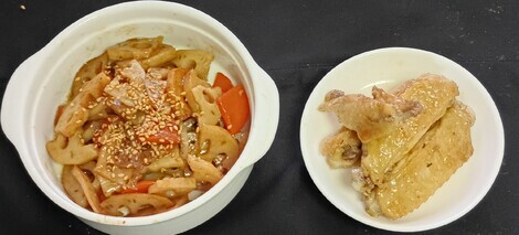 レンコンのキンピラを作りたくてフライパンと銀杏切りしたレンコンとニンジンを前に、鳥の皮脂で炒めると美味しいかも。と鳥の手羽中の皮を焼その周りにレンコンとニンジンを入れて焼きました。キンピラと鳥の照り焼きができました。