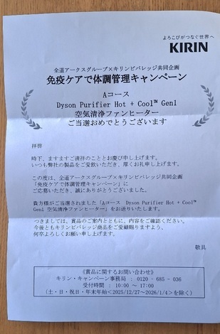スーパー×キリン免疫ケアのレシート応募でdysonが当たりました(^^)