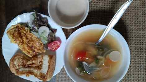 朝は、パンにコーヒー、サラダ、卵焼き等が定番です。