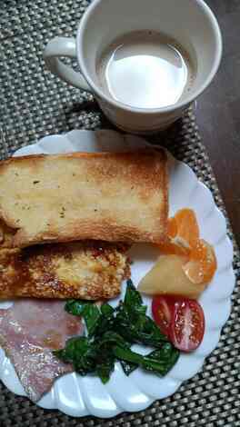 朝は、パンにコーヒー、サラダ、卵焼き等が定番です。