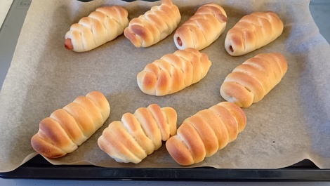 今回はレモン風味のウインナーロールです。本人は柑橘系NGなのでノーマルのウインナーロールも数本焼いてました。