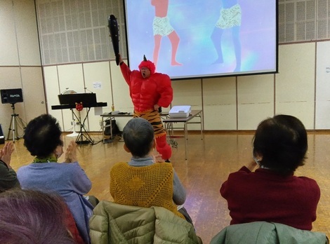 指導者の先生が、鬼の格好で出てきました。大笑いです。心が和みます。