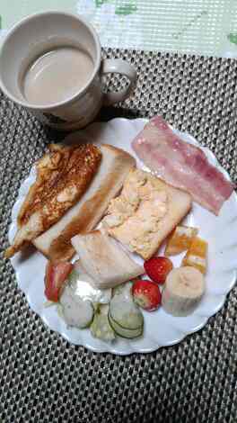 朝は、パンにコーヒー、サラダ、卵焼き等が定番です。