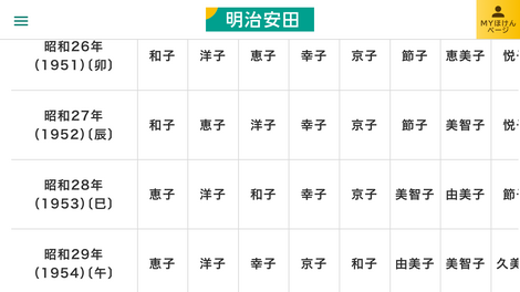 女性の名前は昭和の和をとって和子が昭和初期から27年までほとんど1位でした。