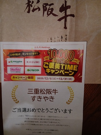イオン系列スーパーで商品券と松阪牛、