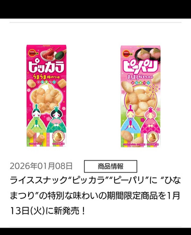 ◎ ピッカラ うまうま梅のり味(ひなまつりパッケージ)