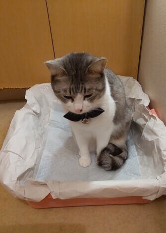 台風接近で雨が降り、肌寒くなったので、いつもの「冬用の猫ハウス」に潜り込んでしまいました~⛺️🐈️