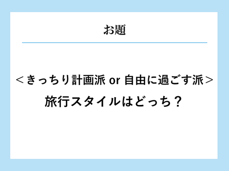 <きっちり計画派or自由に過ごす派>旅行スタイルはどっち?楽しみ方もぜひ★