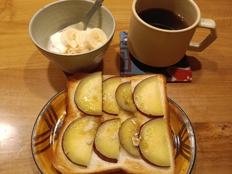今朝はさつまいもとバターをのっけた甘いトースト(^^)❤️お腹いっぱいになりました♪