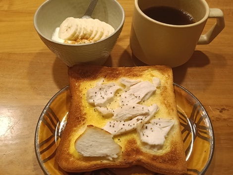今朝は鶏ハムトーストにしました(⁠^⁠^⁠)からしマヨネーズと胡椒たっぷりで、大人なトーストになりました❤️