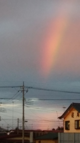 1月21日、朝から雨が降り、一日中、鬱陶しい日でした。夕刻、晴れ間が差し、東北のほうを見ると、虹が出ていました。