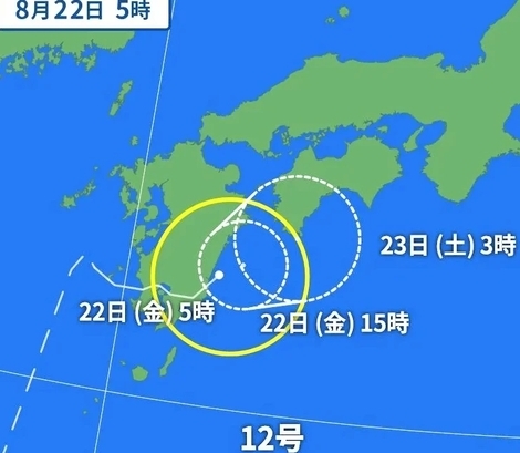 台風🌀12.只今.宮崎市通過.海上を東に移動しています
